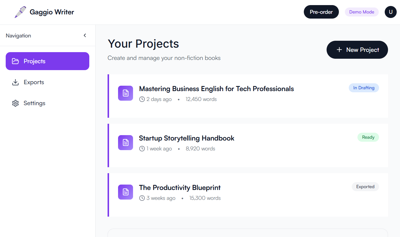 AI-powered writing tool enabling structured book creation with guided workflows.